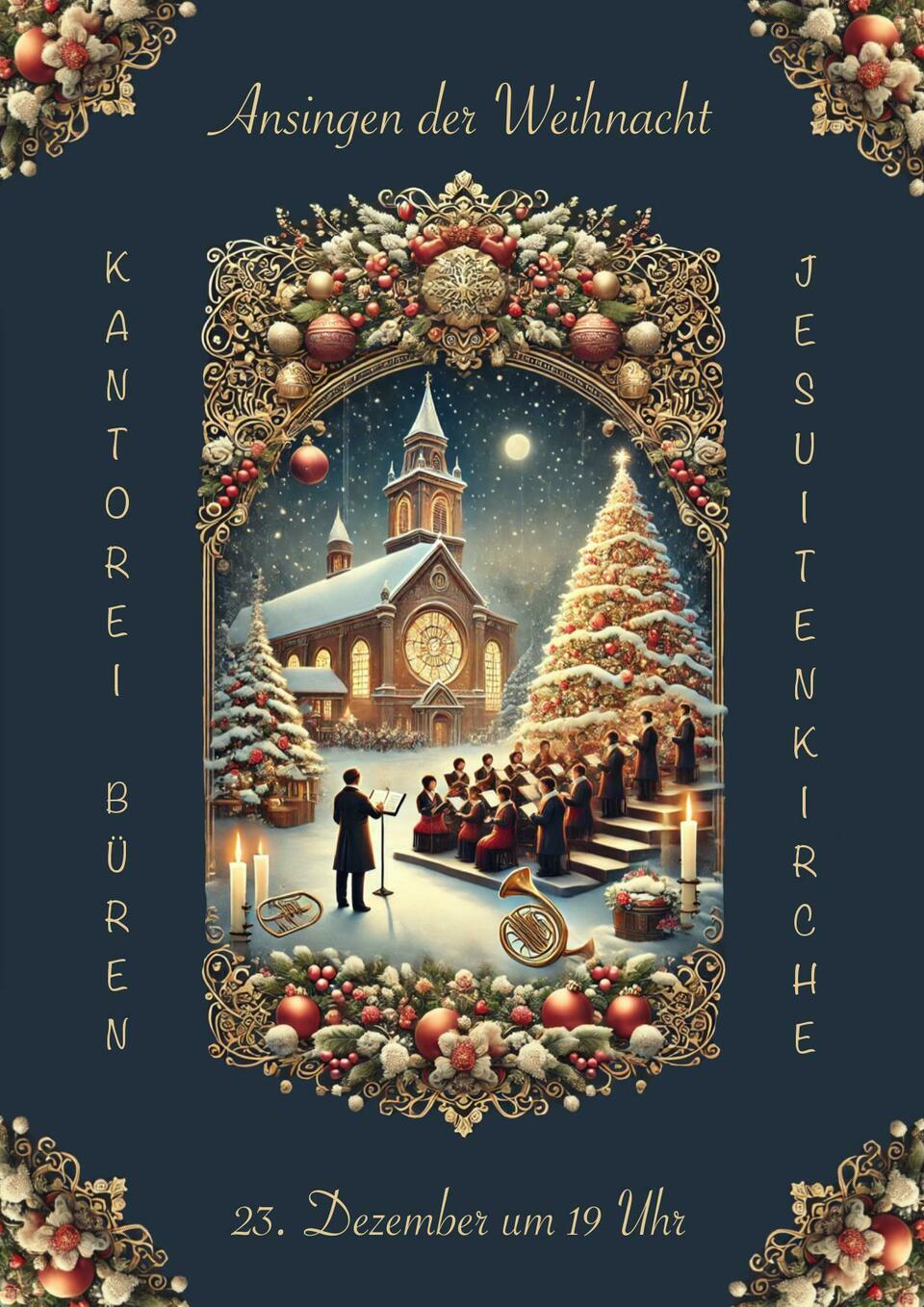 Nach den wunderschönen Konzerten der letzten Jahren will der Chor der Kantorei Büren auch dieses Jahr wieder das „Ansingen der Weihnacht“ gestalten. Dafür werden noch Projektsänger und Projektsängerinnen gesucht die Lust haben innerhalb von 10 Terminen ein vor- / weihnachtliches Programm zu erarbeiten.